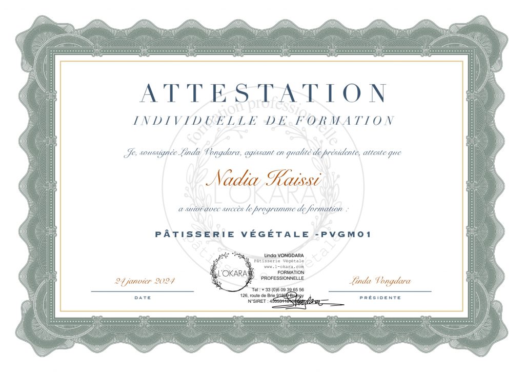 Attestation de formation MODULE 1: PÂTISSERIE VÉGÉTALE